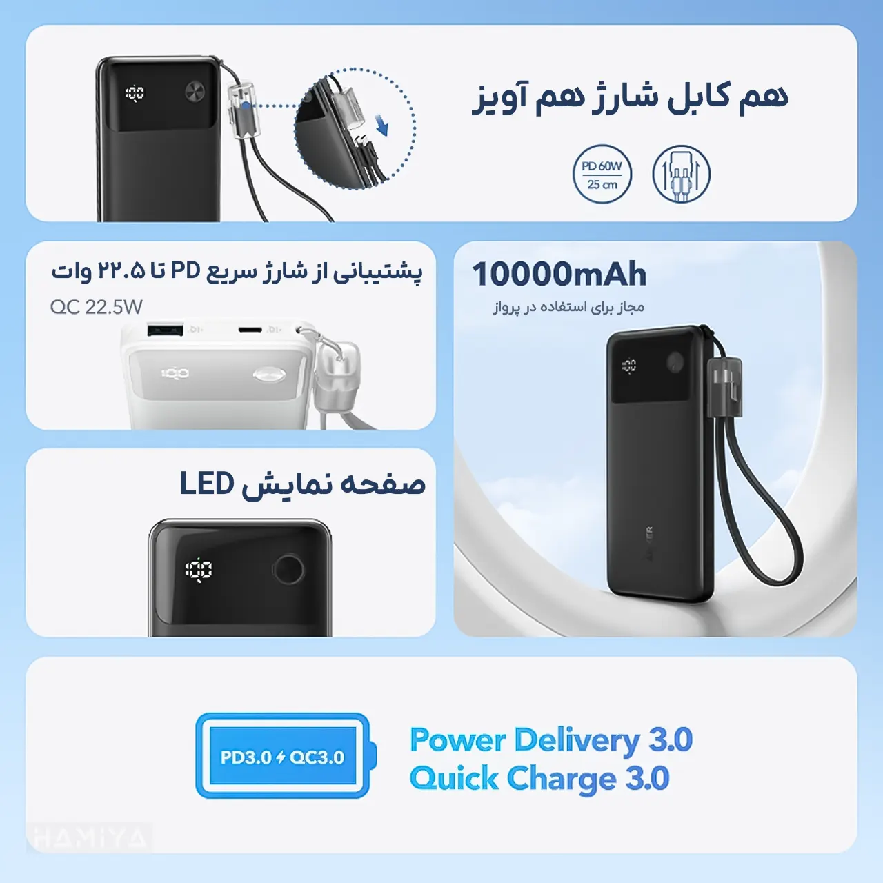 - مشخصات درگاه خروجی Type-C: 5V⎓3A / 9V⎓2.22A / 10V⎓2.25A (22.5W)