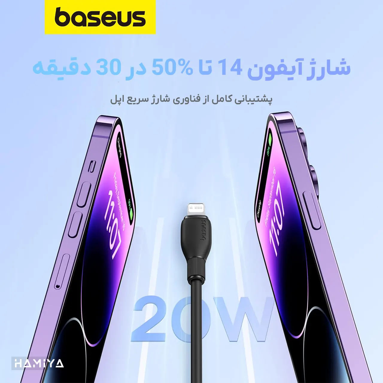 مشخصات کابل تبدیل تایپ سی به لایتنینگ بیسوس مدل CB000053 با توان 20 وات و طول 1.2 متر