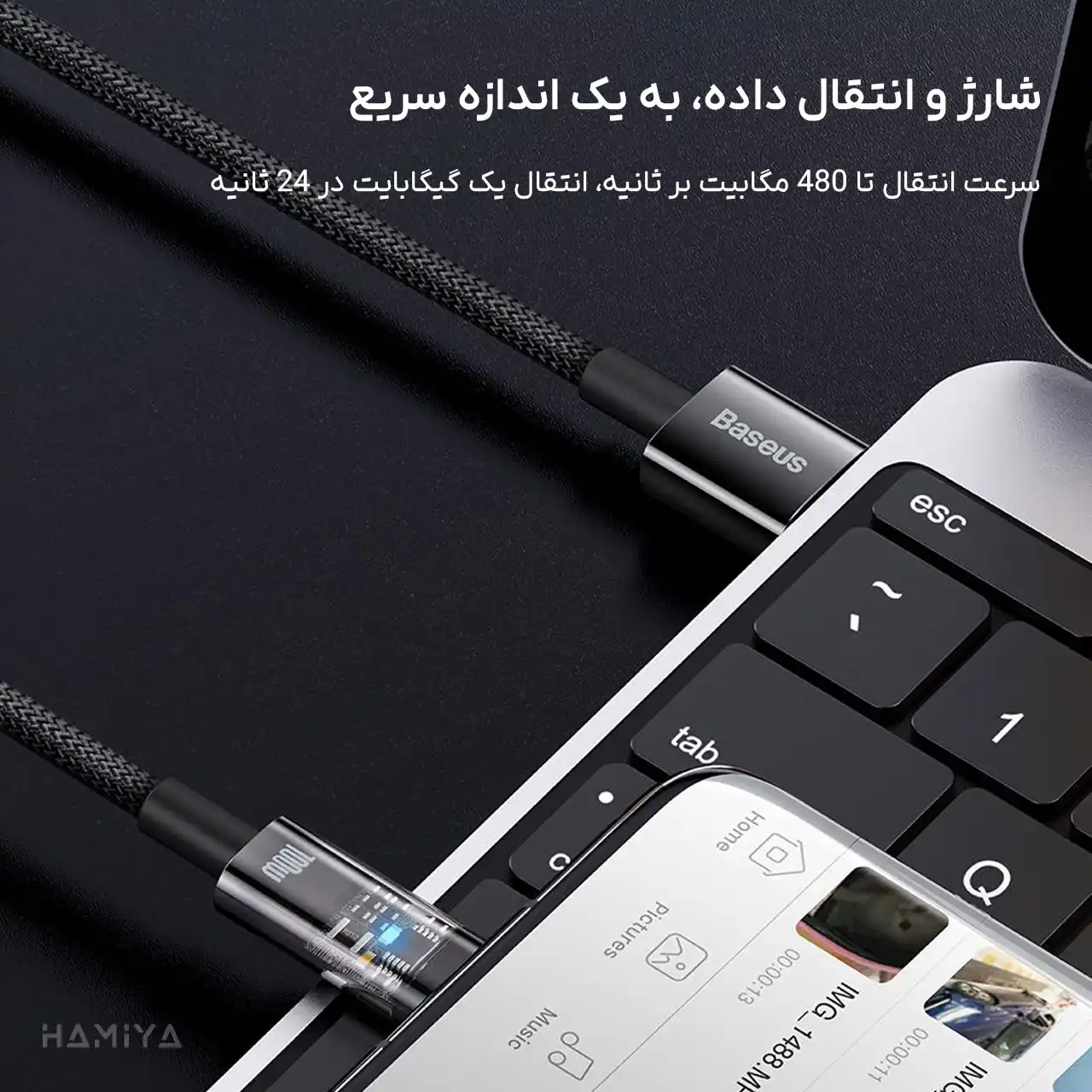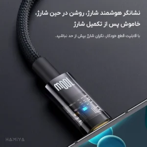 مشخصات کابل تبدیل USB-A به تایپ سی هوشمند بیسوس مدل CATS000201 با توان 100 وات، قطع خودکار و طول 1 متر