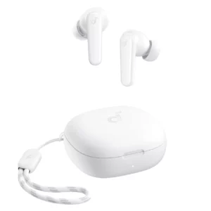 لوگوی Soundcore بر روی کیس شارژ حک شده است که ظاهری شیک و مدرن به آن میبخشد. اندازه کیس شارژ کمی از کیسهای دیگر هندزفریهای توگوشی بزرگتر است. کیس شارژ انکر R50i دارای یک بند است که حمل آن را در دست یا کیفتان آسانتر میکند. این کیس از طریق درگاه USB Type-C شارژ میشود. R50i سبک و راحت است و بعد از قرار دادن در گوش، تقریباً هیچ وزنی را احساس نمیکنید. این هندزفریها به طور محکم در گوش شما جای میگیرند و حتی با تکان دادن شدید سر هم از گوشتان خارج نمیشوند. علاوه بر این، هندزفری بیسیم R50i دارای استاندارد مقاومت IPX5 در برابر عرق و رطوبت است که این هدست را به گزینهای ایدهآل برای ورزش و فعالیتهای بدنی تبدیل کرده است.